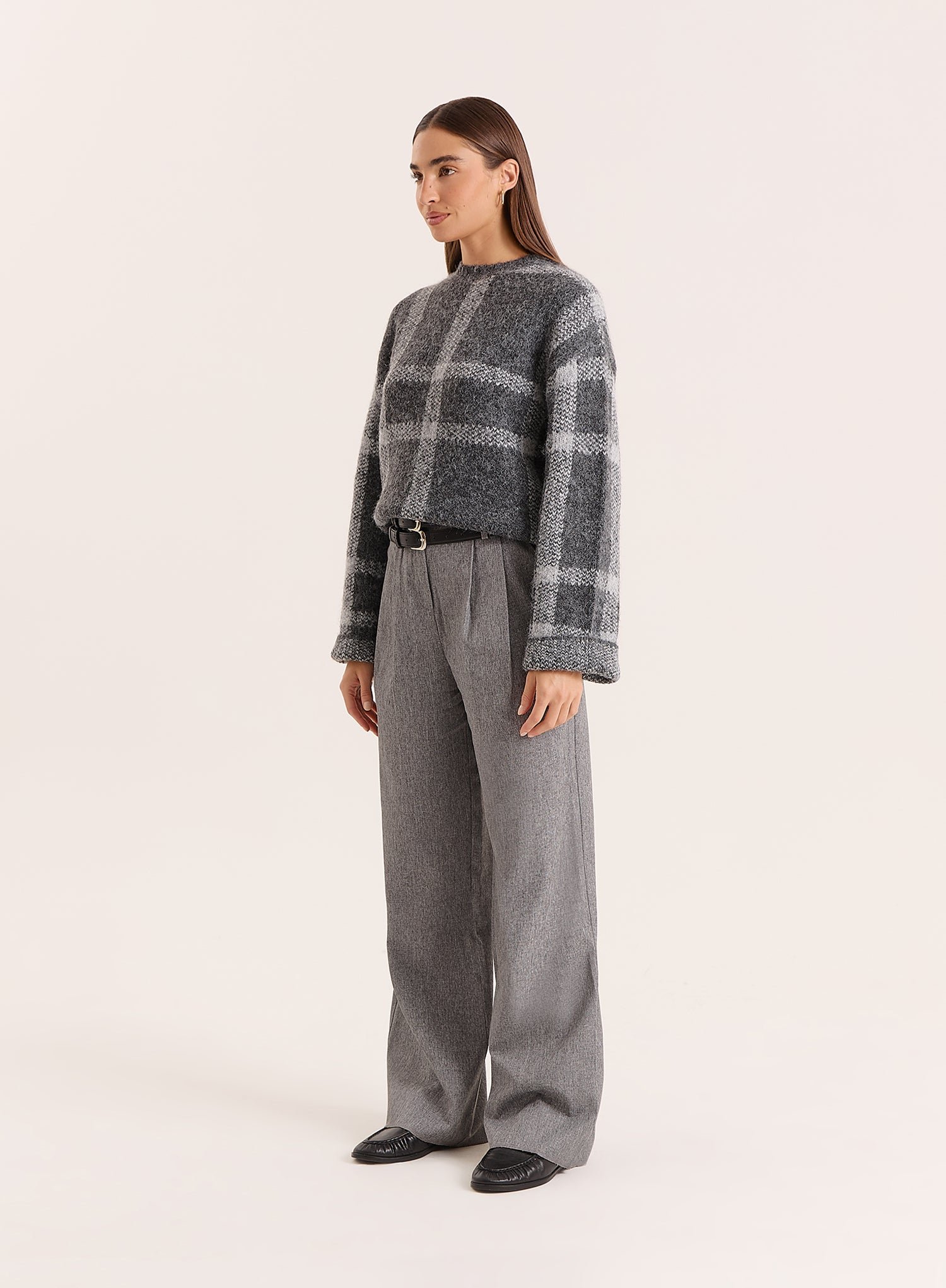 Grey Checked Wide-Sleeved Jumper- Adrian